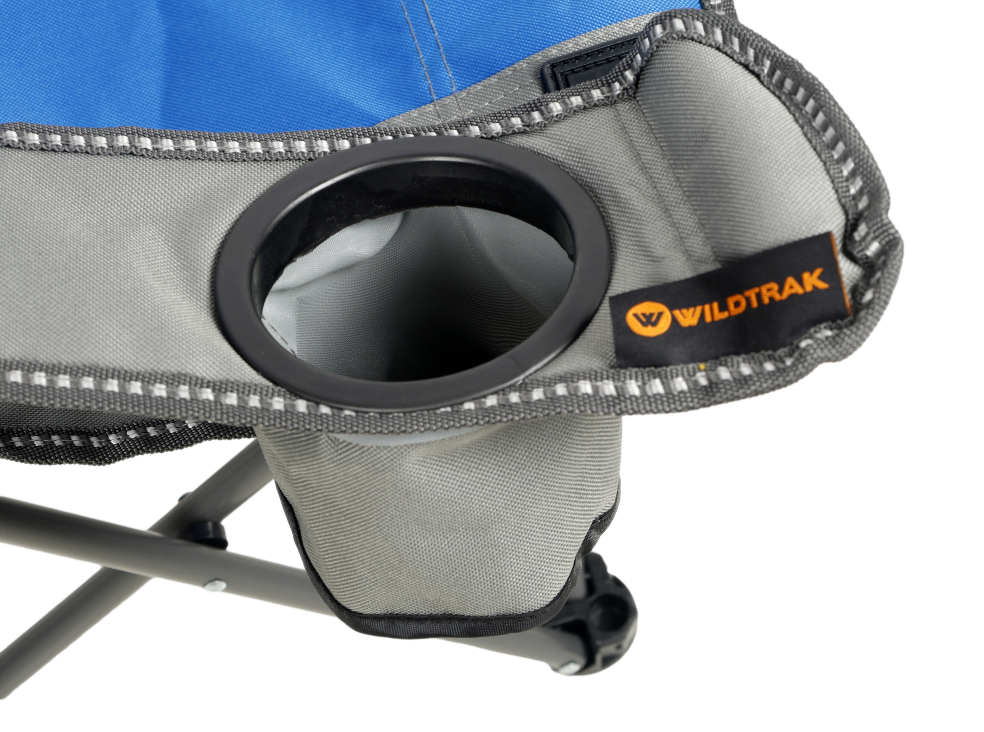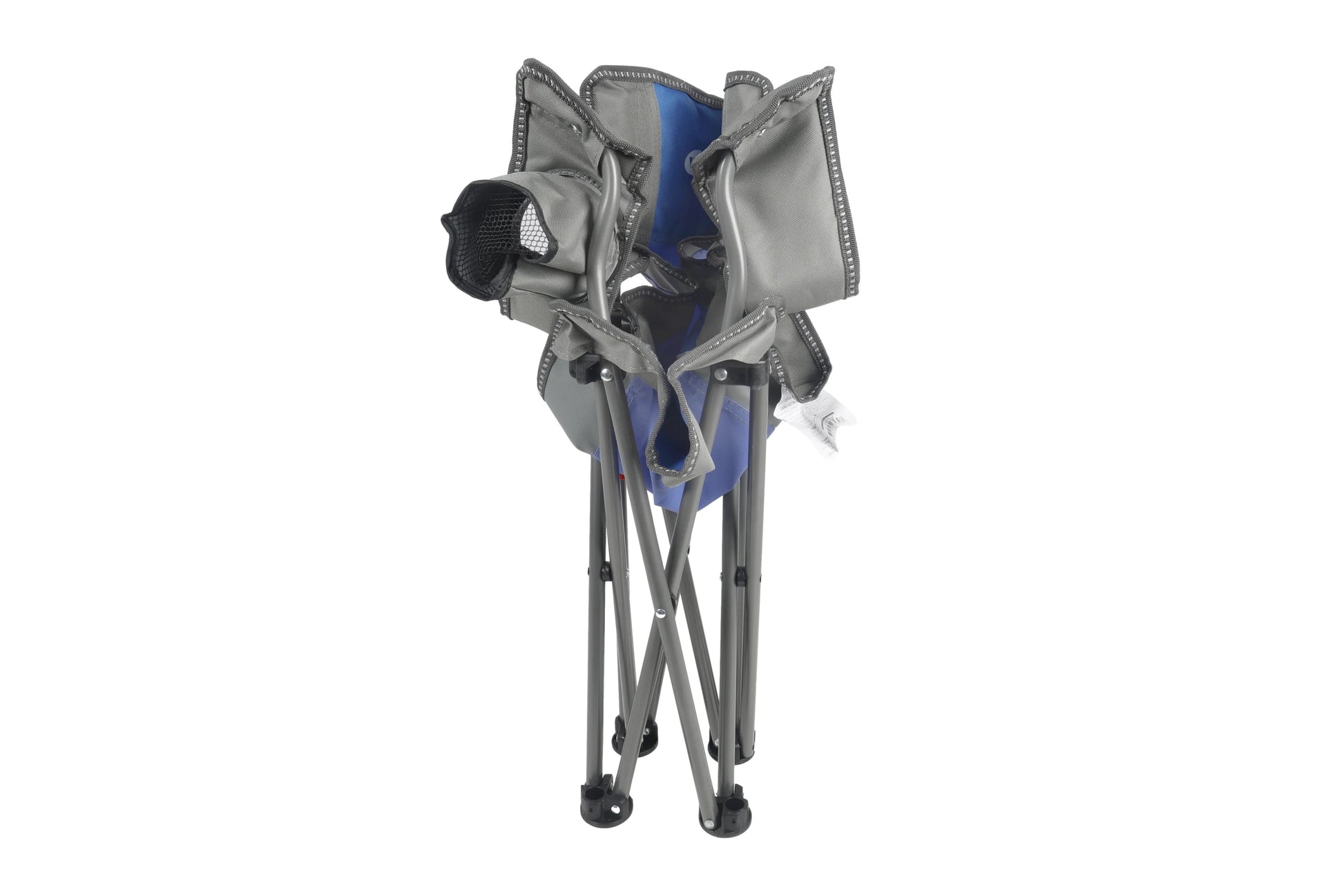 KIDS Camp Chair, Blue/Grey Foldable, Easy Clean Fabric, Drink Holder, Weight Rated 100kg, Carry Bag with Shoulder Strap