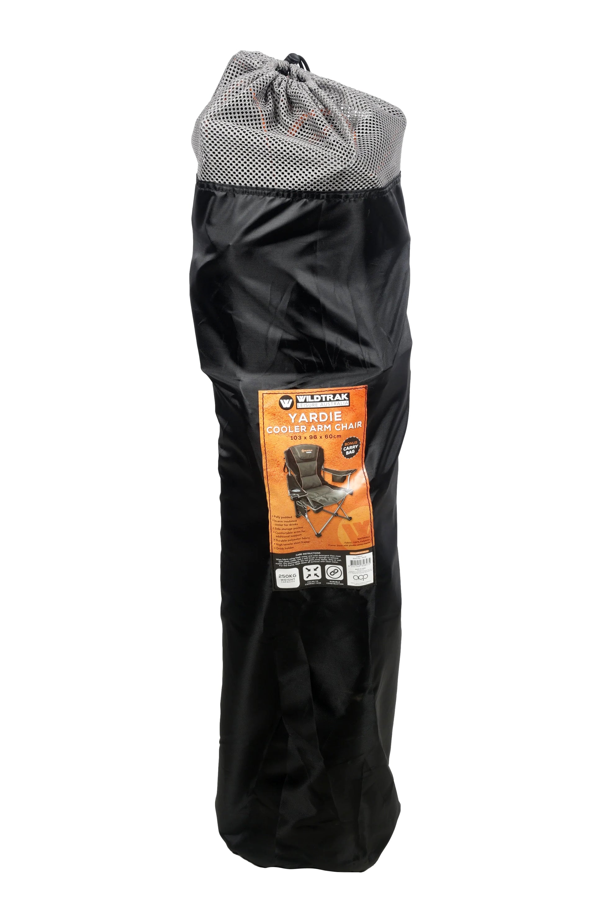 Yardie Deluxe Foldable Arm Chair with Shoulder Strap, Built-in Cooler Storage, Drink Holder, Wine Glass Holder